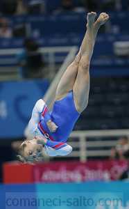 Elena Zamolodchikova flip twists at the 2004 Athens Summer Olympics.