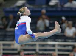 Maria Kriuchkova (Kryuchkova) vault pike at the 2004 Athens Summer Olympics.rnrnAthens Olympic GamesrnrnDate of birth: 7/7/1988 rnCountry: russian senior gymnast rnCoach: Olga Sagina rnClub: Olympic Reserve School rnHome town: Rostov-na-Dona rnrnAchievements:rnEuropean Junior Champion 2002