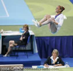 Terin Humphrey beam dismount at the 2004 Athens Summer Olympics.